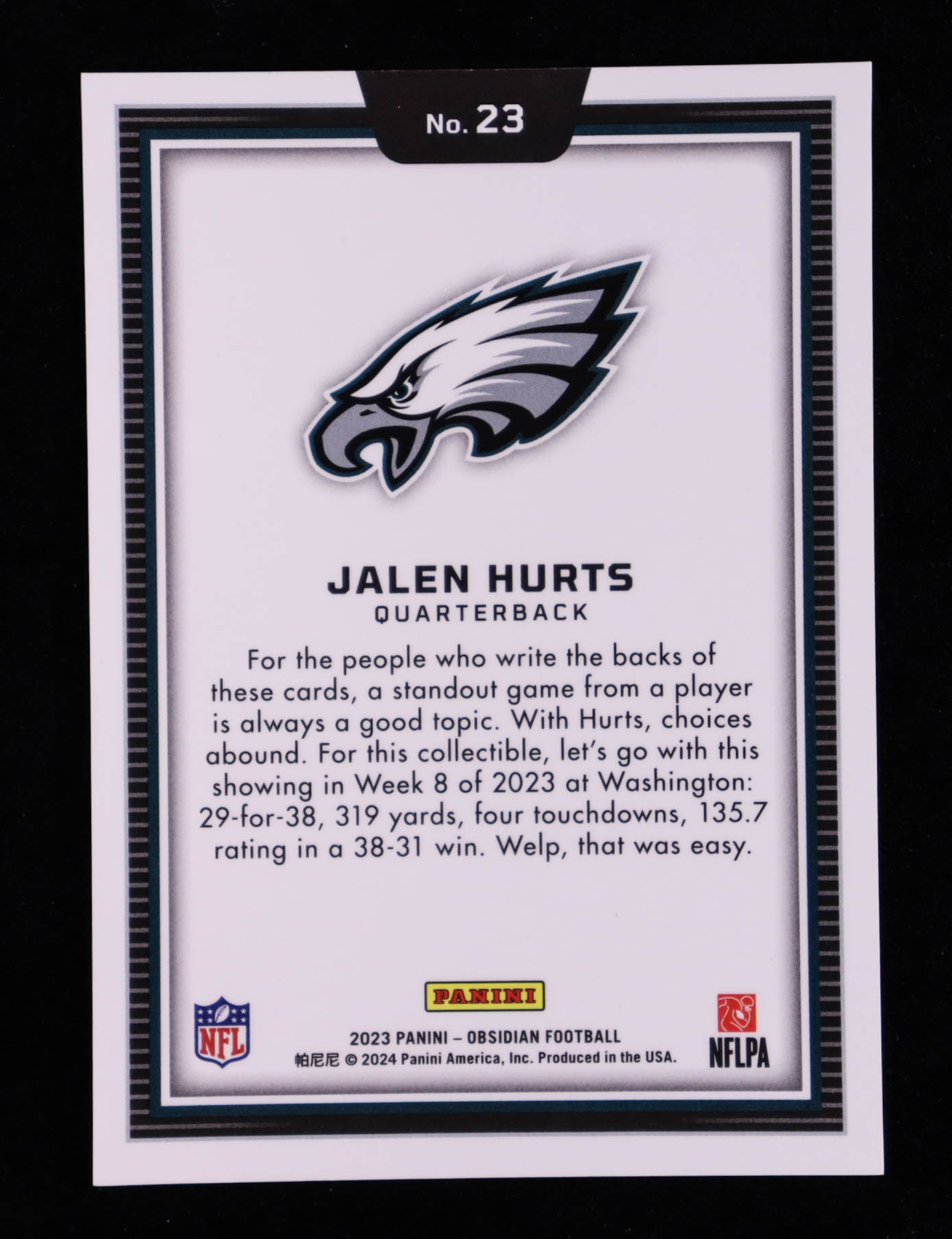Jalen Hurts 2023 Panini Obsidian Black Color Blast #23