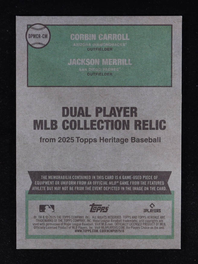 Corbin Carroll / Jackson Merrill 2025 Topps Heritage MLB Collection Dual Player Relics #DPMCRCM
