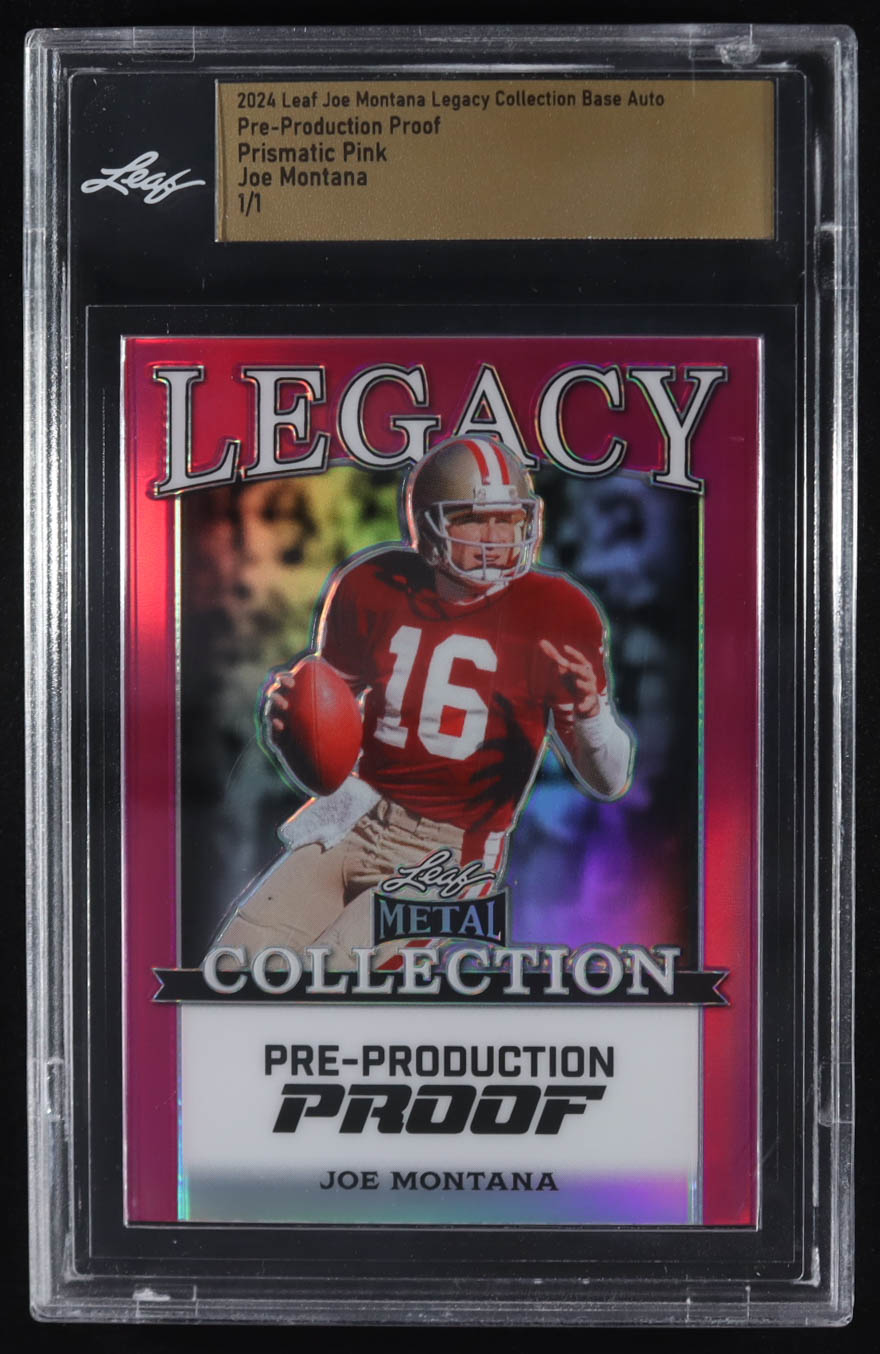 Joe Montana 2024 Leaf Joe Montana Legacy Base Auto Pre-Production Proof Prismatic Pink #NNO #1/1 (Leaf)