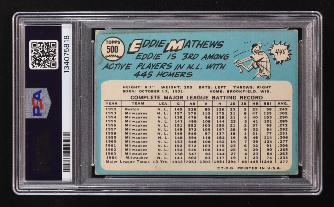 Eddie Mathews 1965 Topps #500 (PSA 3)