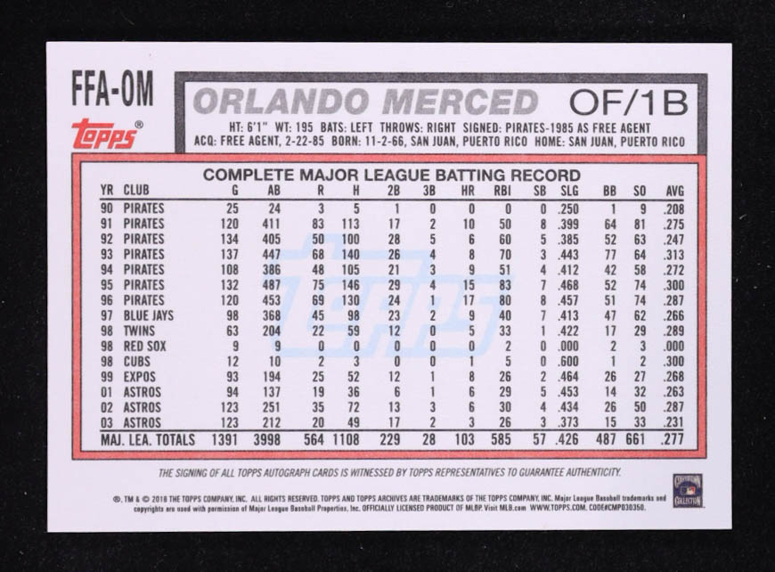 Orlando Merced 2018 Topps Archives Fan Favorites Autographs #FFAOM