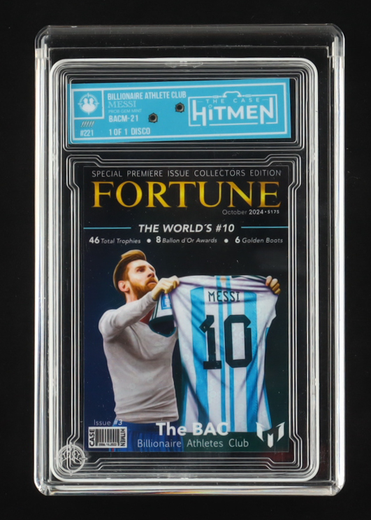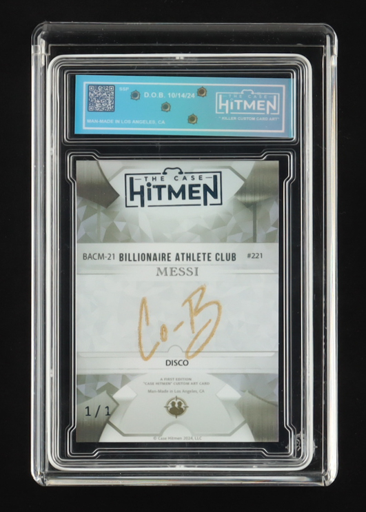 Lionel Messi "Billionaire Athlete Club" 2024 The Case Hitmen Custom Disco BACM-21 #221 #1/1 with (2) Custom Coins & Display Box