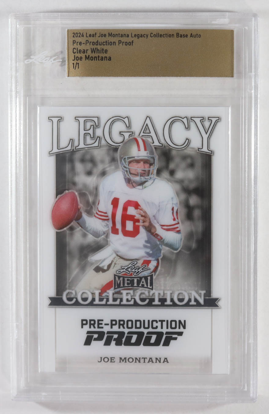 Joe Montana 2024 Leaf Joe Montana Legacy Base Auto Pre-Production Proof Clear White #NNO #1/1 (Leaf)
