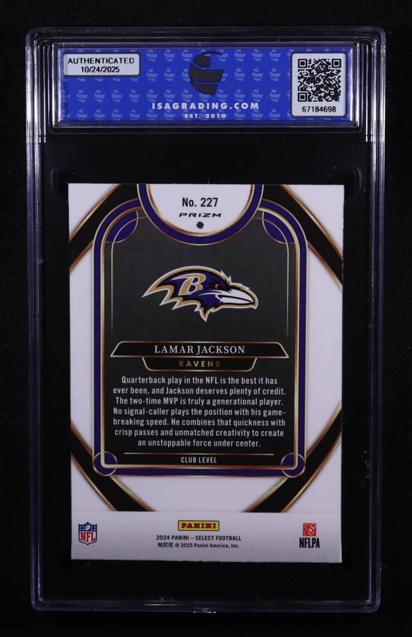 Lamar Jackson 2024 Panini Select Club Level Black And Red Shock Prizm #227 (ISA 8.5)