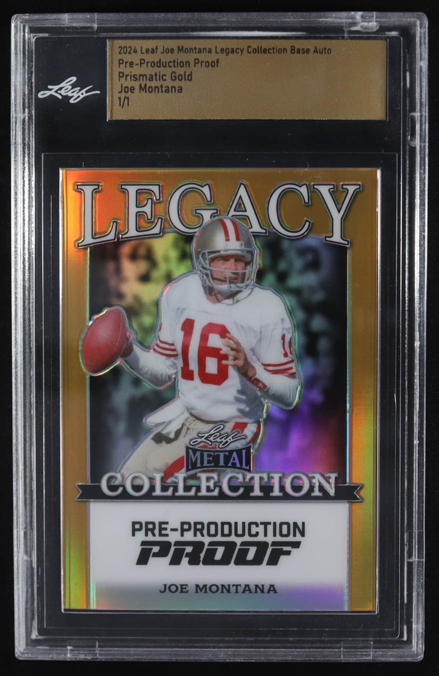 Joe Montana 2024 Leaf Joe Montana Legacy Base Auto Pre-Production Proof Prismatic Gold #NNO #1/1 (Leaf)
