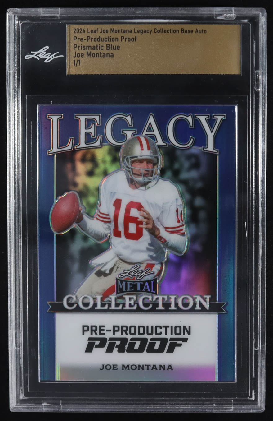 Joe Montana 2024 Leaf Joe Montana Legacy Base Auto Pre-Production Proof Prismatic Blue #NNO #1/1 (Leaf)
