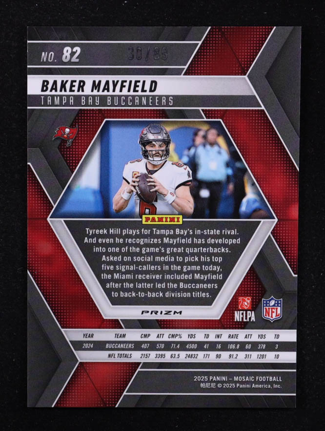 Baker Mayfield 2025 Panini Mosaic Mosaic Choice Fusion Red and Yellow #82 #30/89