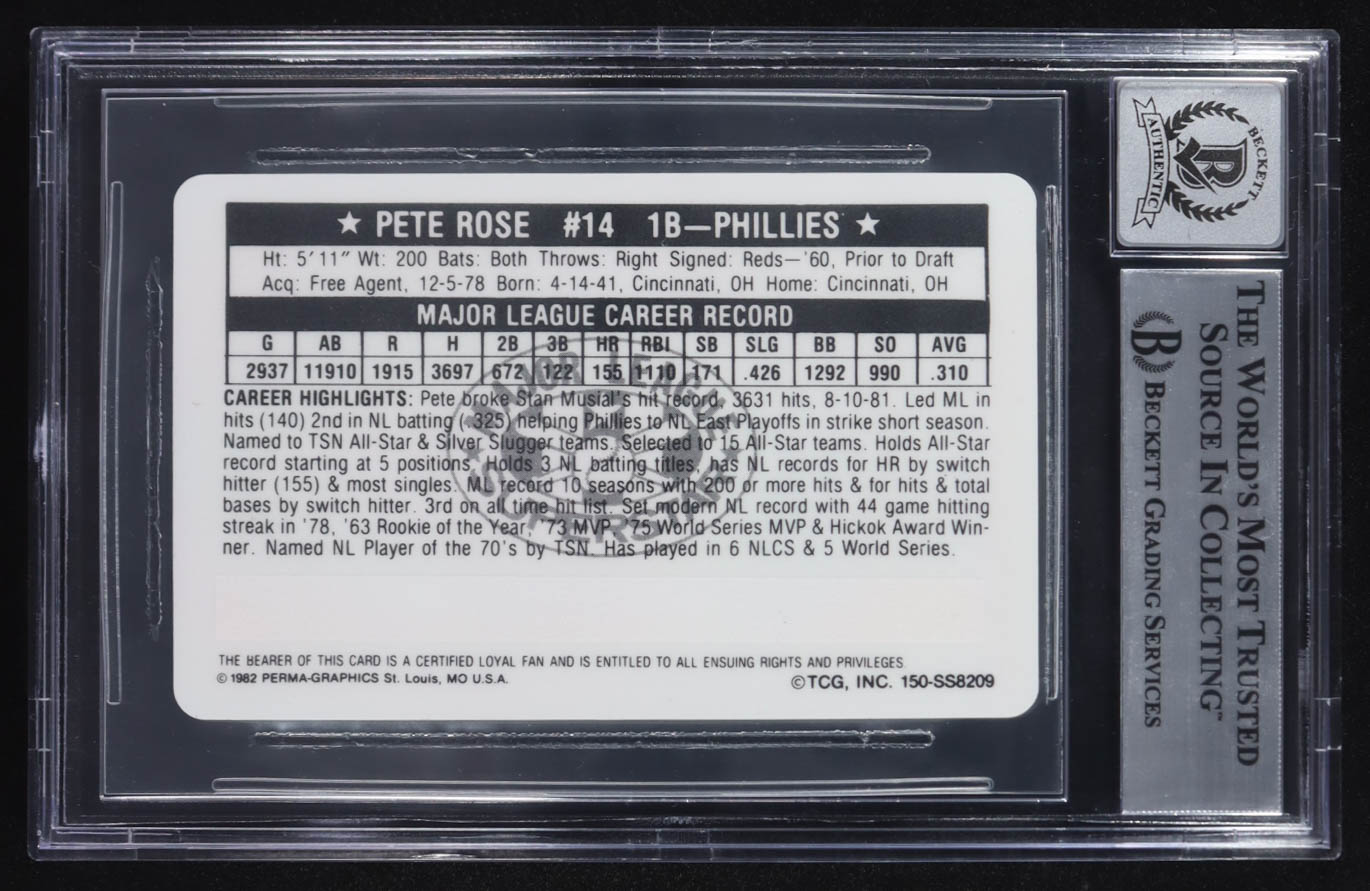 Pete Rose Signed 1982 Perma-Graphics Super Star Credit Cards #150 (BGS | Autograph Graded 10)