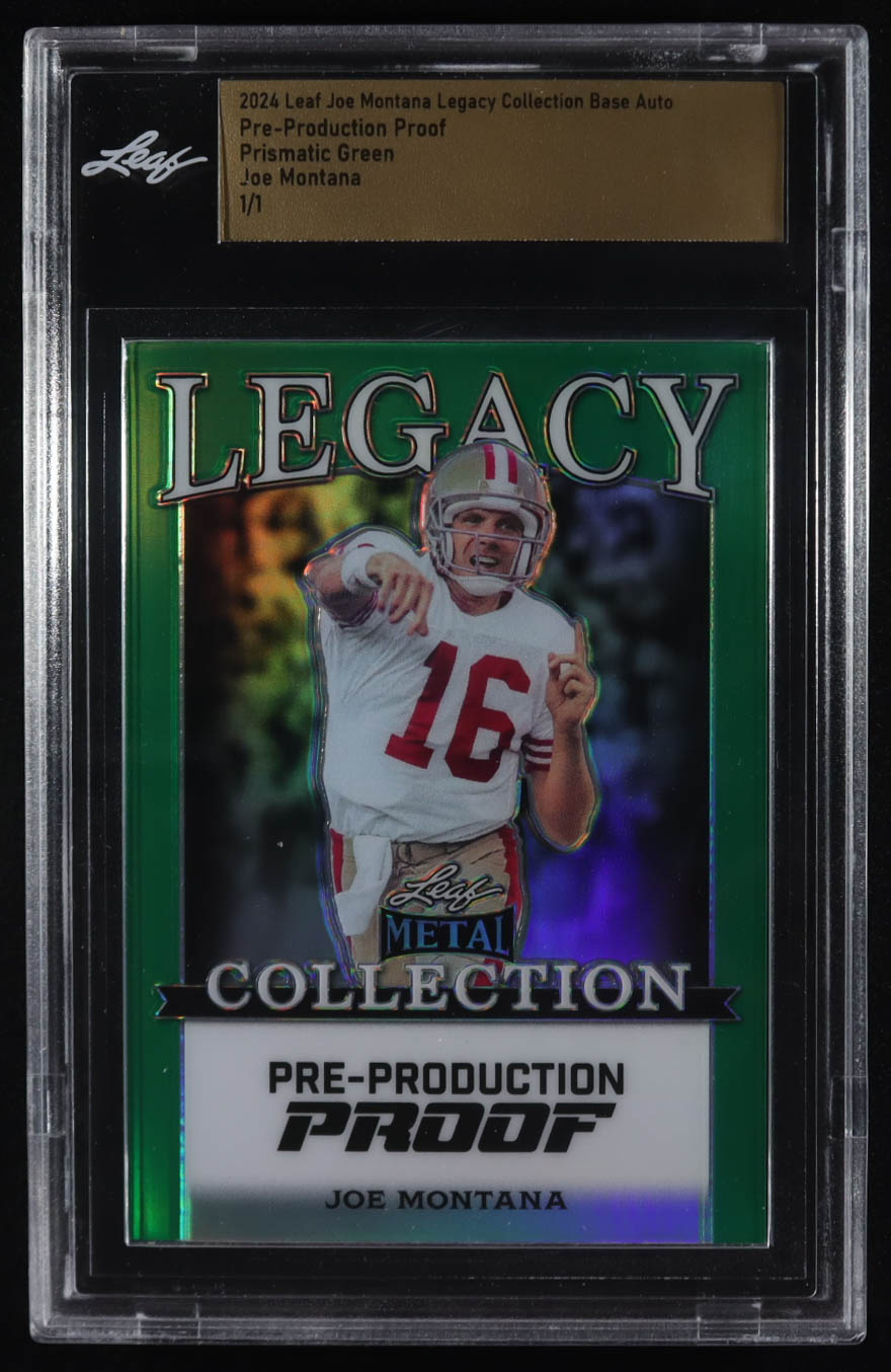 Joe Montana 2024 Leaf Joe Montana Legacy Base Auto Pre-Production Proof Prismatic Green #NNO #1/1 (Leaf)