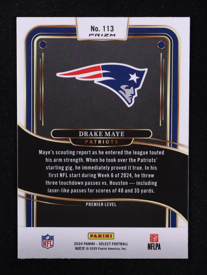 Drake Maye 2024 Select Prizm Green and Yellow Shock #113 RC