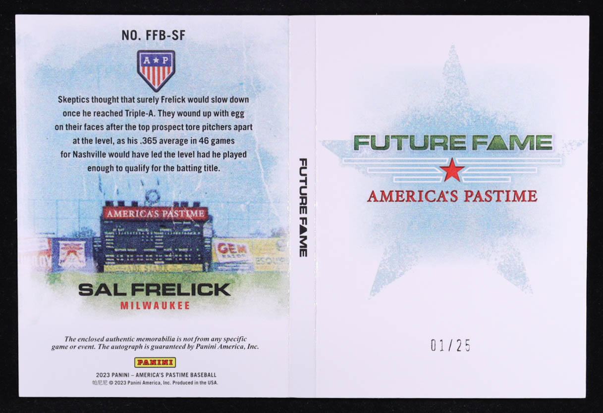 Sal Frelick 2023 Panini National Treasures America's Pastime Future Fame Autograph Memorabilia Booklets Gold #FFBSF RC #01/25