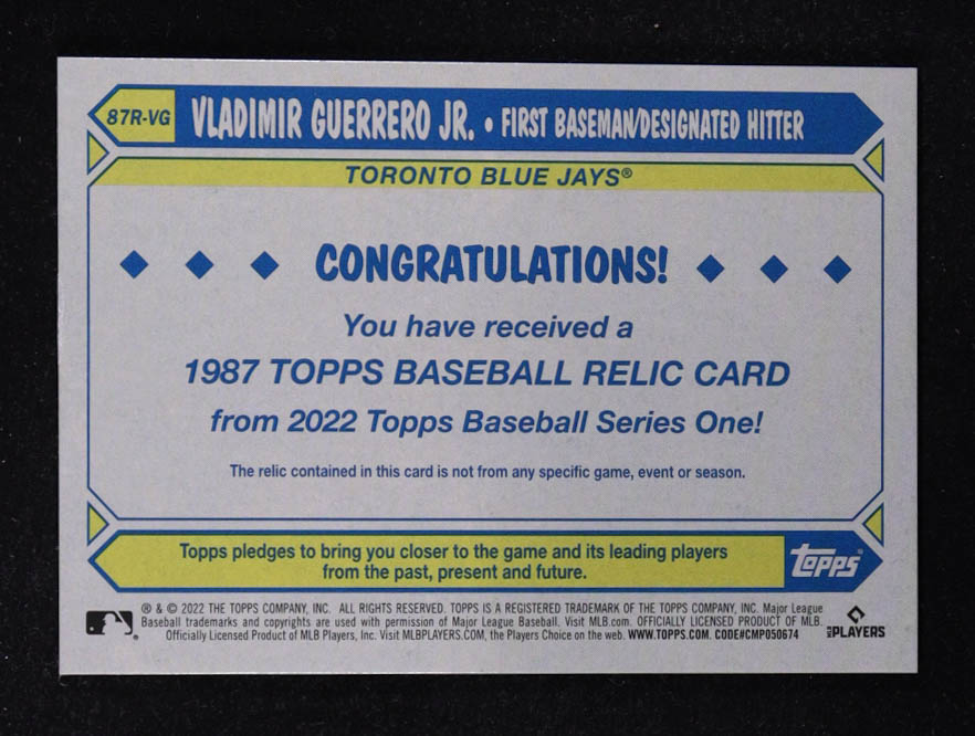 Vladimir Guerrero Jr. 2022 Topps '87 Topps Relics #87RVG