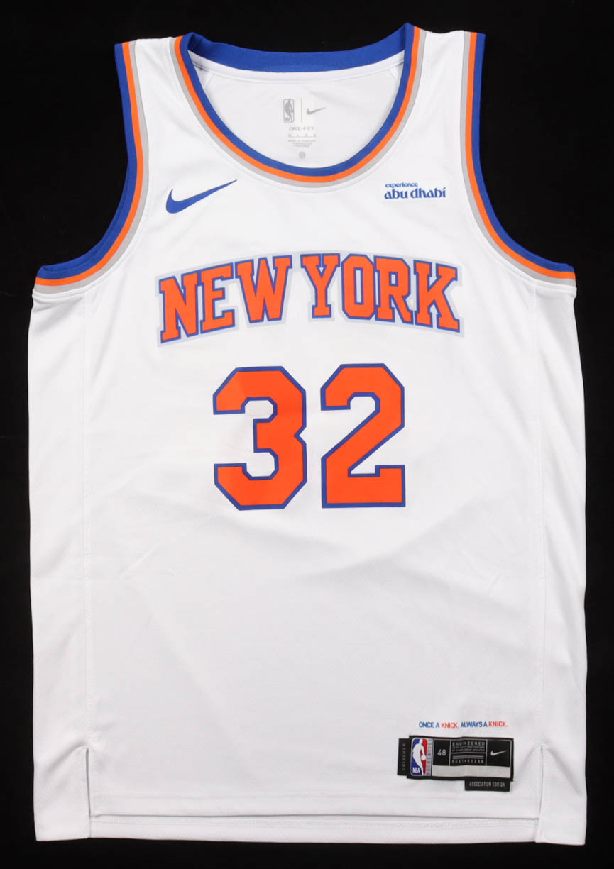 Nike authentic jersey with everything pressed on, size 52. Hand-signed by Karl-Anthony Towns (New York Knicks).