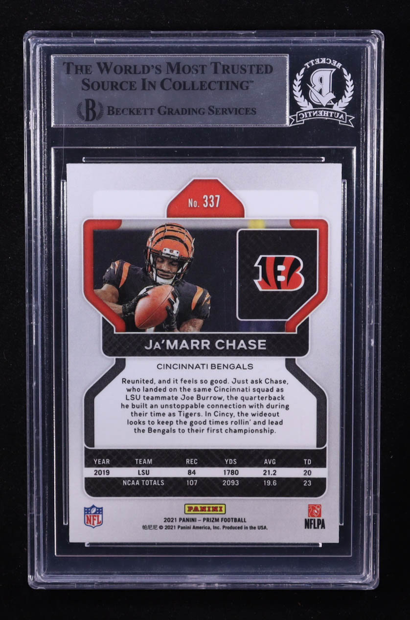 Ja'Marr Chase Signed 2021 Panini Prizm #337 RC Inscribed "Who Dey" (BGS)