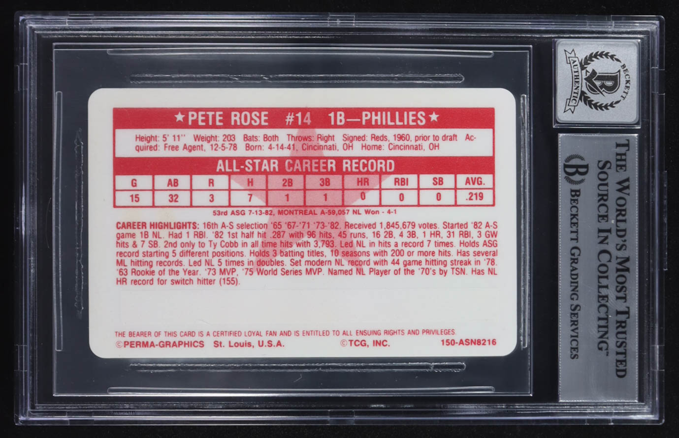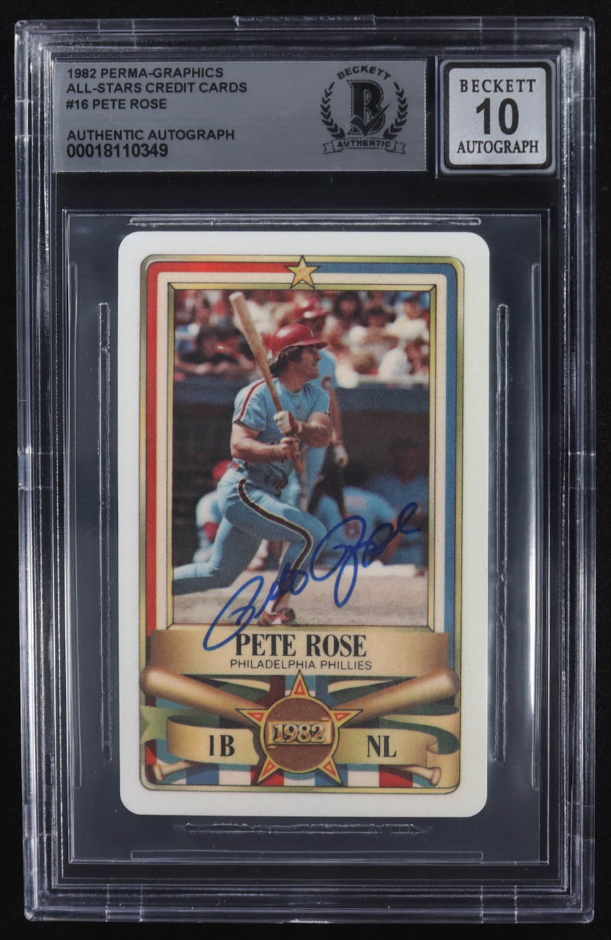 Pete Rose Signed 1982 Perma-Graphics Super Star Credit Cards #16 (BGS | Autograph Graded 10)