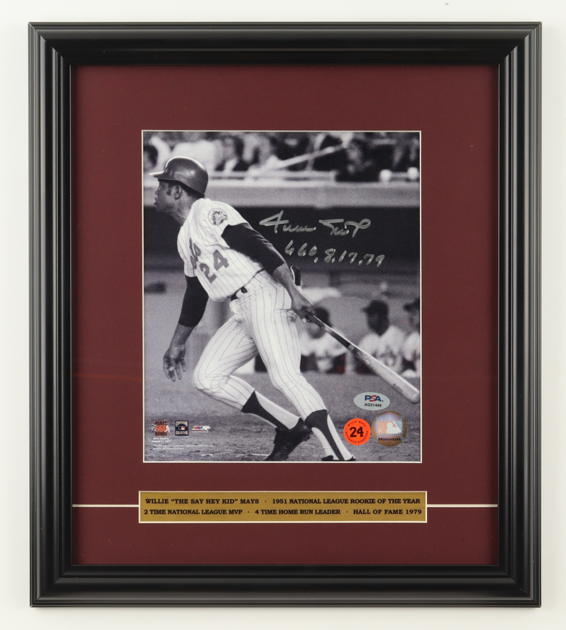 Willie Mays Signed Giants Custom Framed Photo Display Inscribed "660 8-17-79" with Stat Plaque (PSA & Mays)
