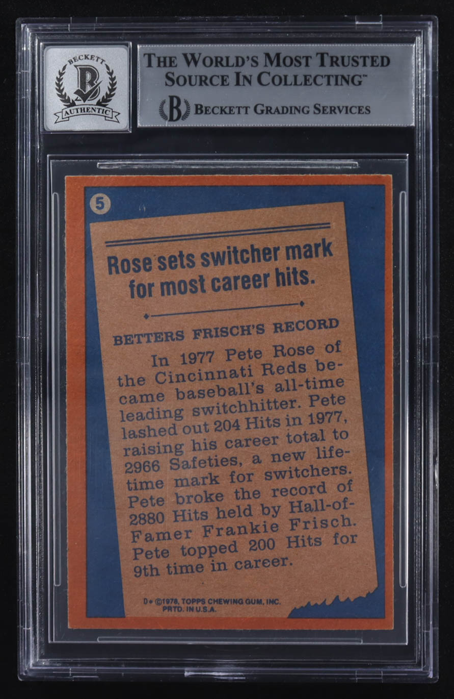 Pete Rose Signed 1978 Topps #5 RB (BGS | Autograph Graded 10)