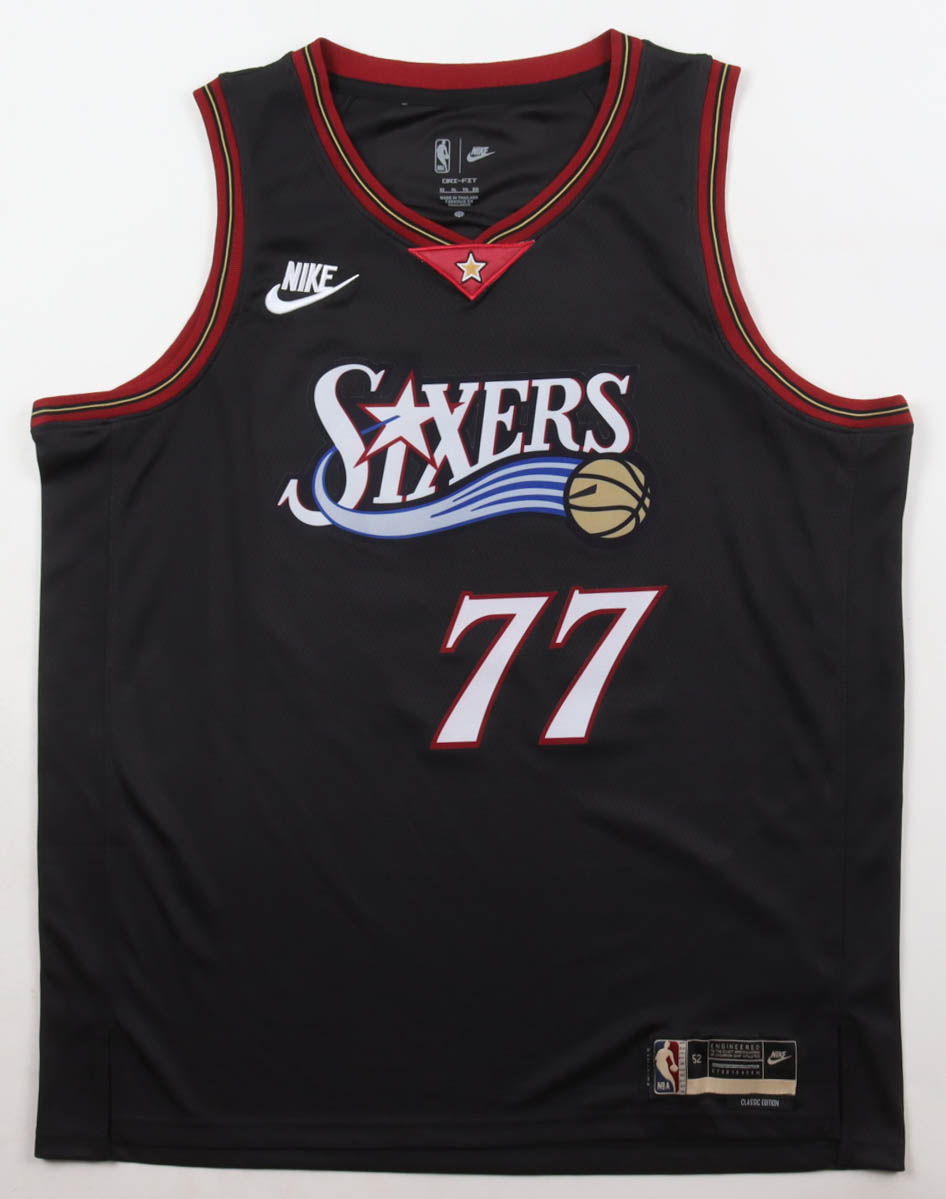 Nike authentic jersey with everything pressed on, size 52. Hand-signed by V. J. Edgecombe (Philadelphia 76ers).