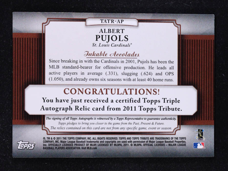 Albert Pujols 2011 Topps Tribute Autograph Triple Relics #AP #06/99