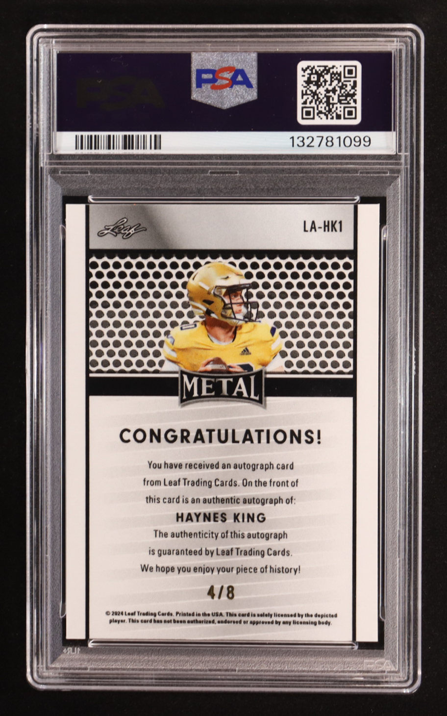 Haynes King 2024 Leaf Metal Collective Purple Shimmer Auto #LA-HK1 RC (PSA 9 | Autograph Graded PSA 10)
