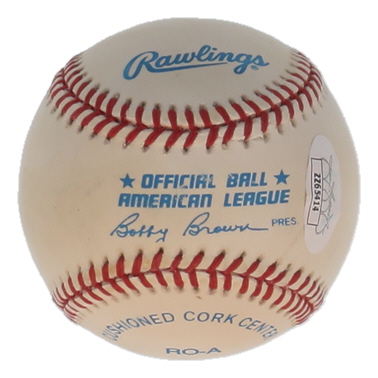 Official American League Baseball has been hand-signed by Sandy Koufax (Los Angeles Dodgers, HOF). Please note, the baseball is stained and toned, and the signature is faded.