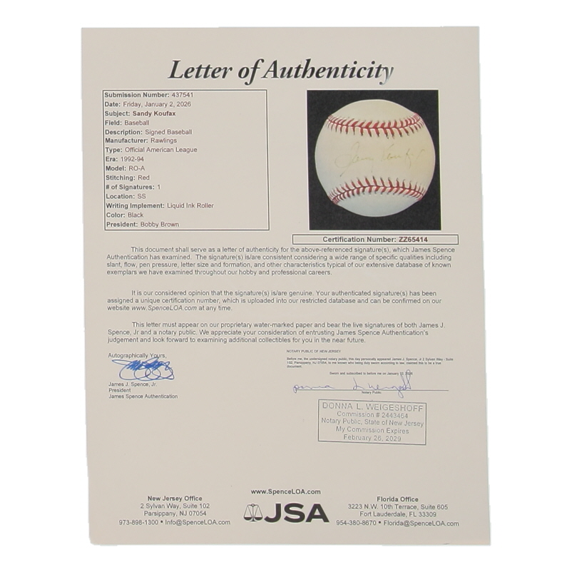 Sandy Koufax Signed OAL Baseball (JSA)