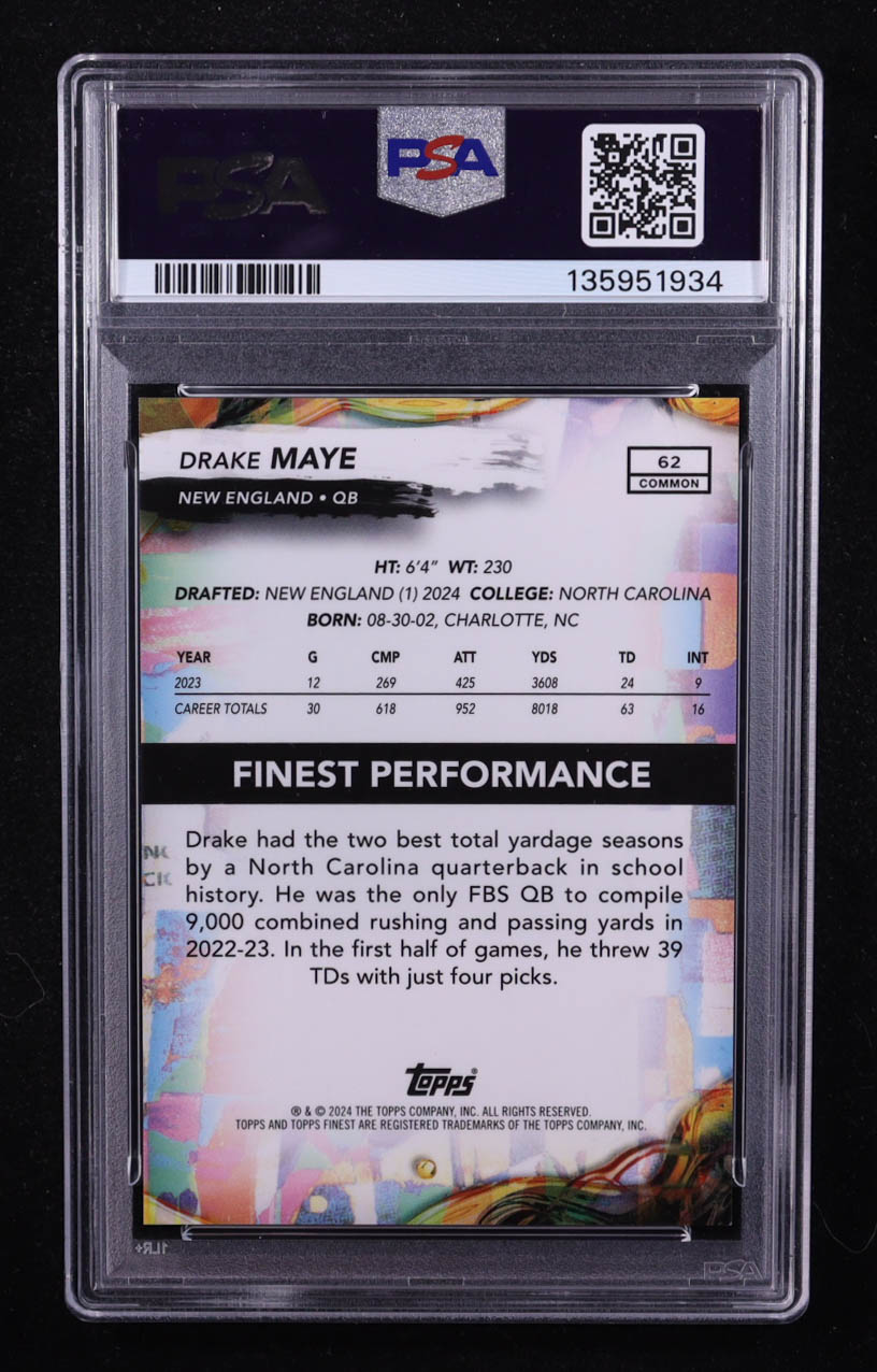 Drake Maye 2024 Finest Black Refractors #62 RC #10/25 (PSA 9)