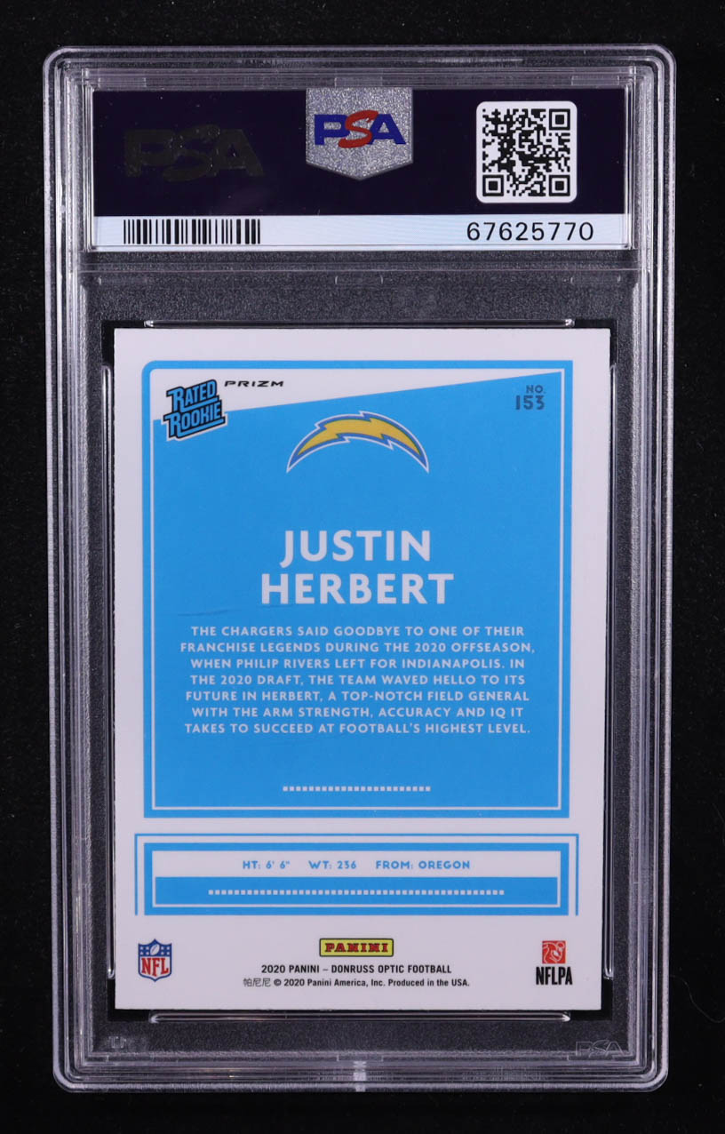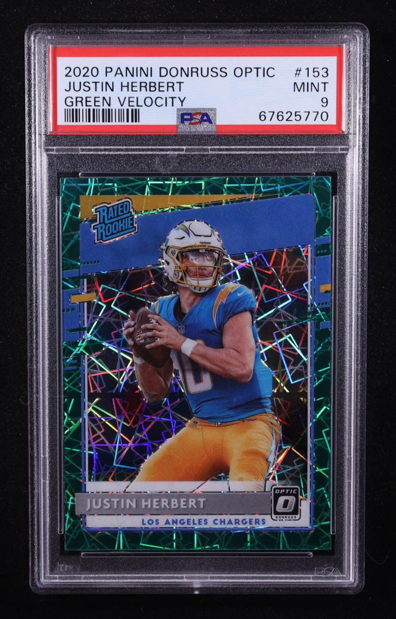 Justin Herbert 2020 Donruss Optic Green Velocity #153 RR RC (PSA 9)