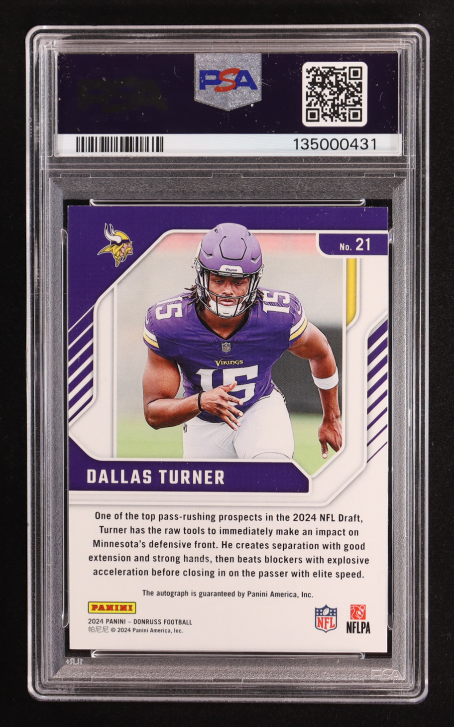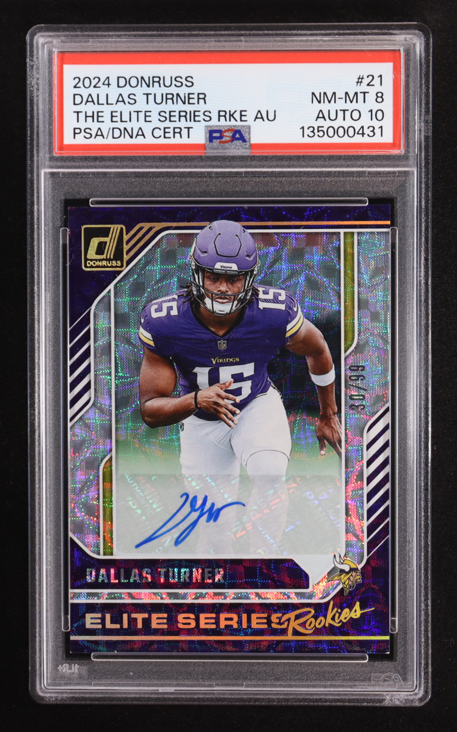 Dallas Turner 2024 Panini Donruss The Elite Series Rookies Auto #21 RC #30/99 (PSA 8 | Autograph Graded PSA 10)