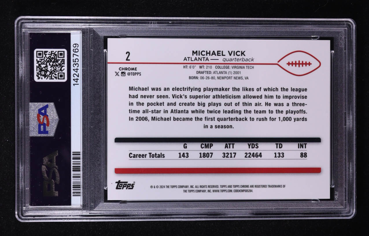 Michael Vick 2024 Topps Chrome Sapphire White #2 #5/15 (PSA 10)