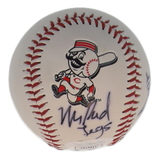 Rawlings Mr. Red Legs Logo baseball has been hand-signed by Brandon Phillips, Jeff Keppinger and Tom Browning (Cincinnati Reds). Please note the Mr. Red Legs signature is inconclusive, see photos for more details.