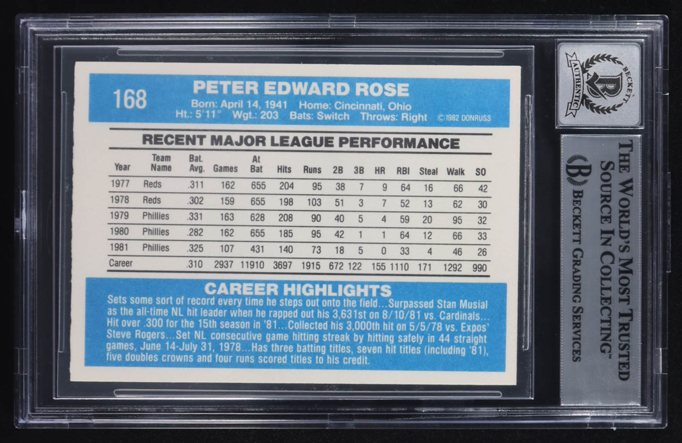 Pete Rose Signed 1982 Donruss #168 (BGS | Autograph Graded 10)