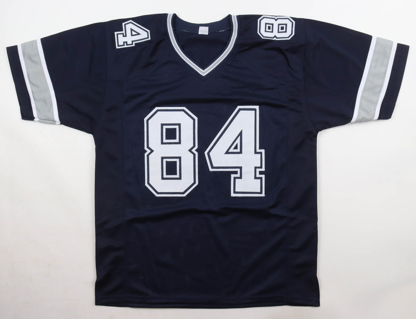 Custom jersey with everything sewn on, size XL. Hand-signed by Jay Novacek. Please note, glue is visible through the reverse number.