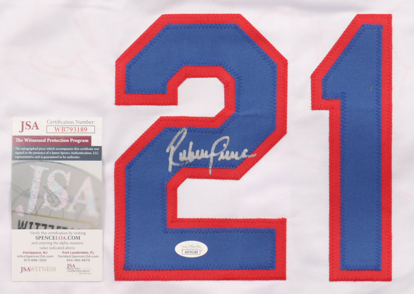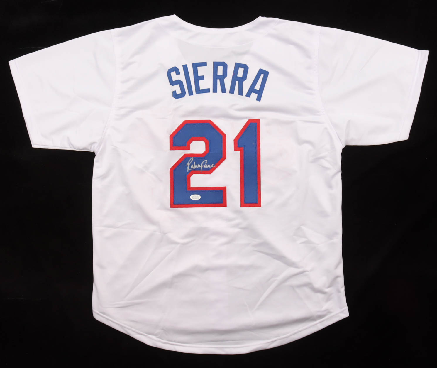 Custom jersey with everything sewn on, size XL. Hand-signed by Ruben Sierra.