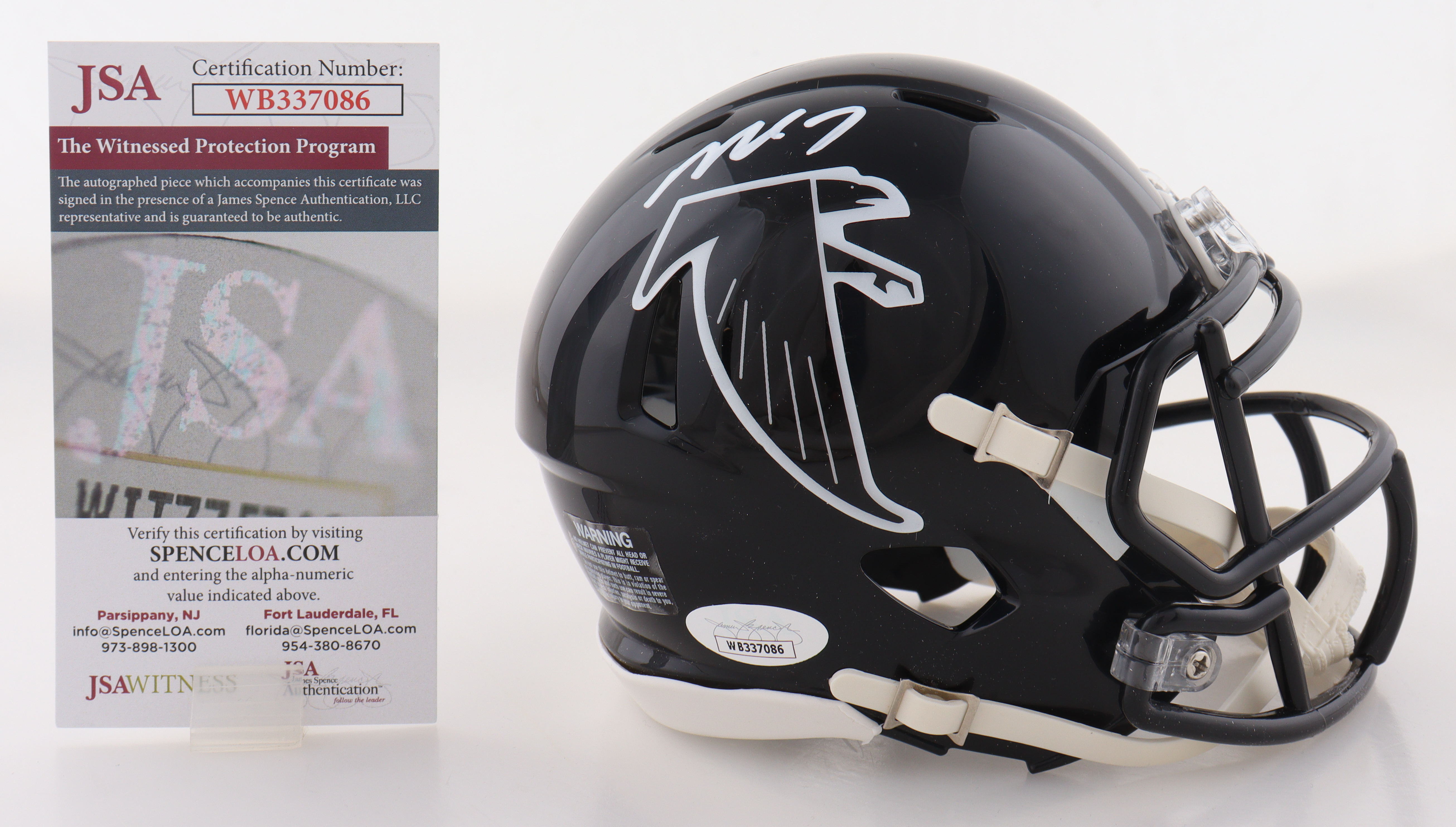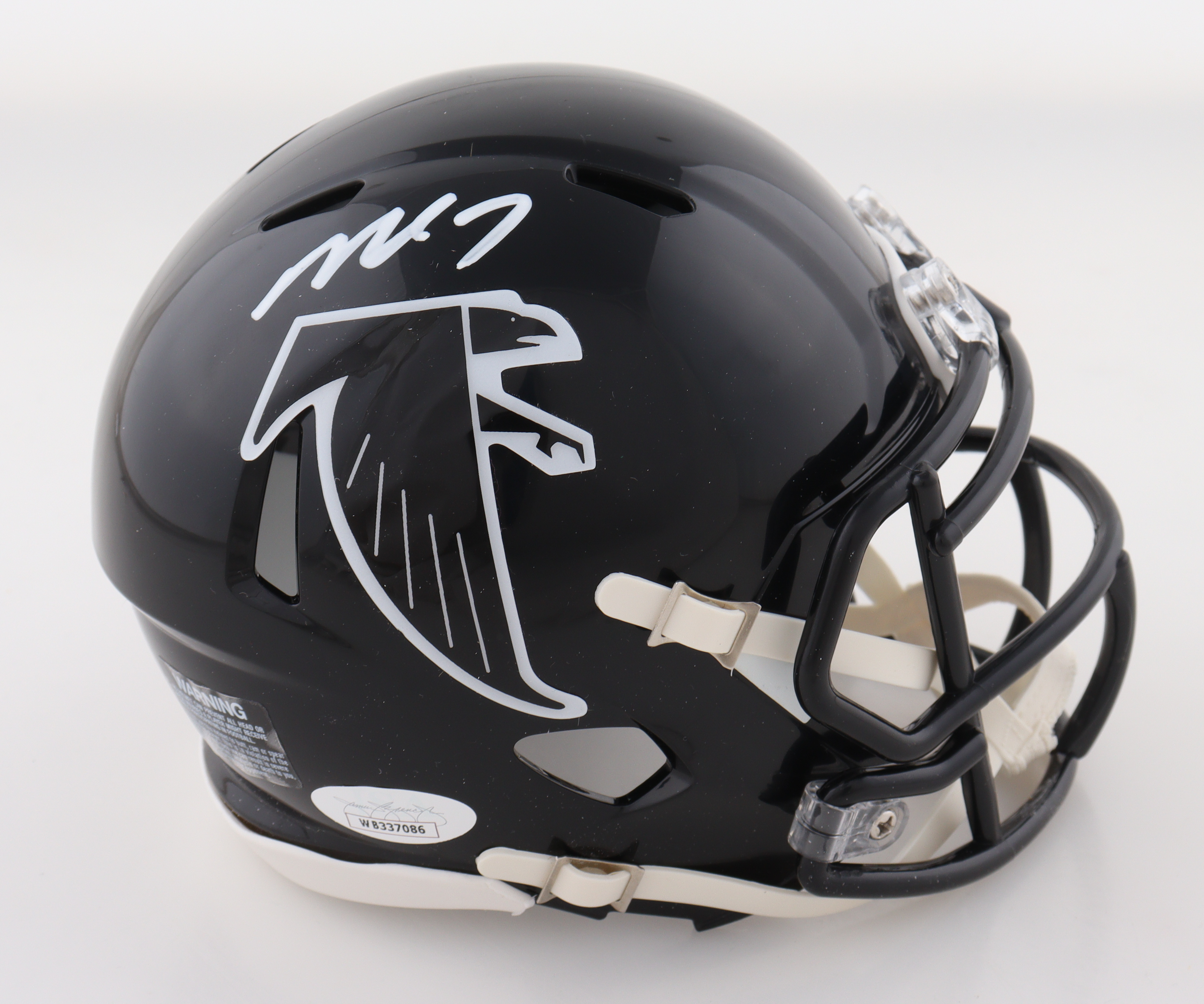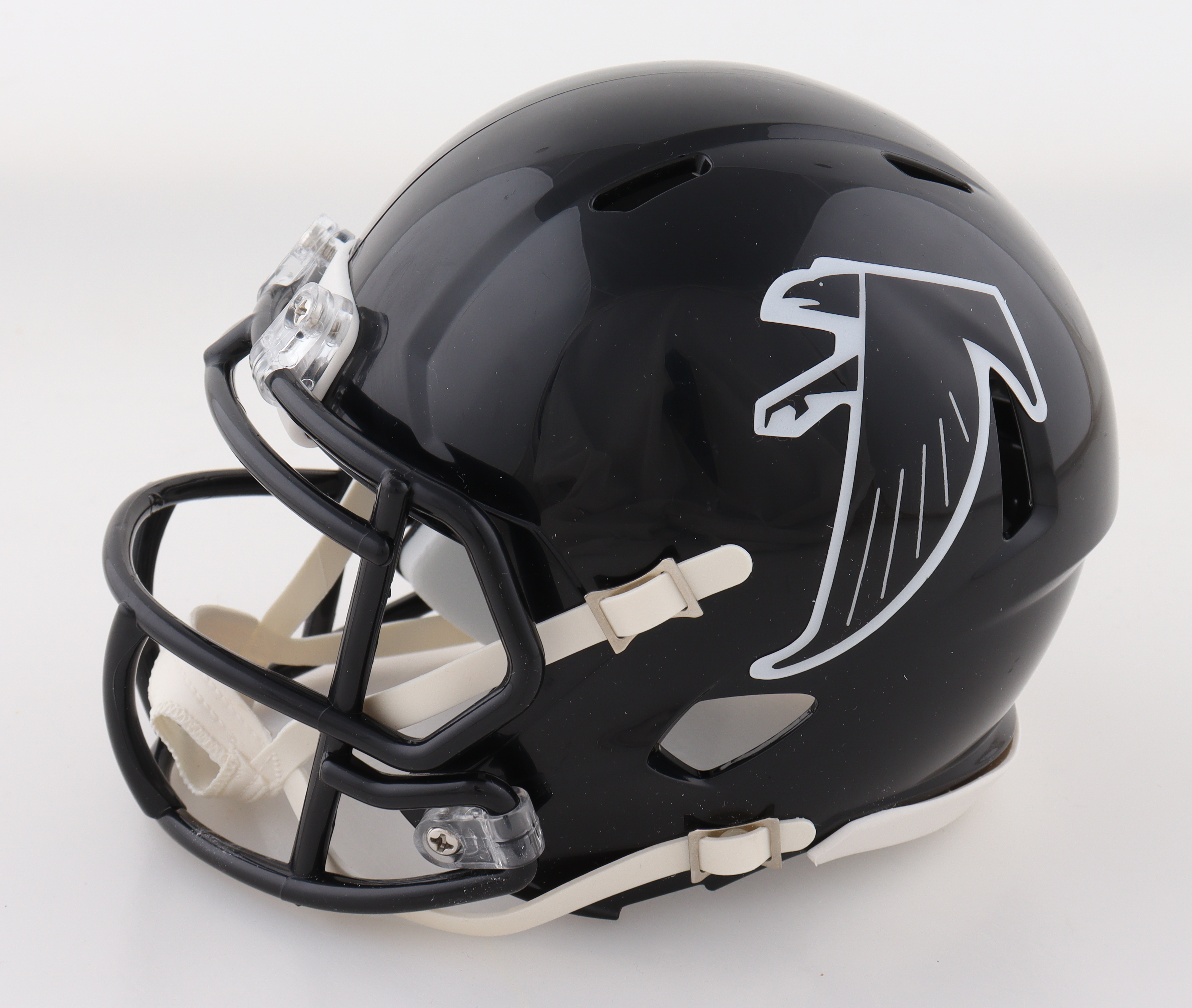 Riddell Atlanta Falcons Throwback Alternate Speed mini helmet has been hand-signed by Michael Vick.