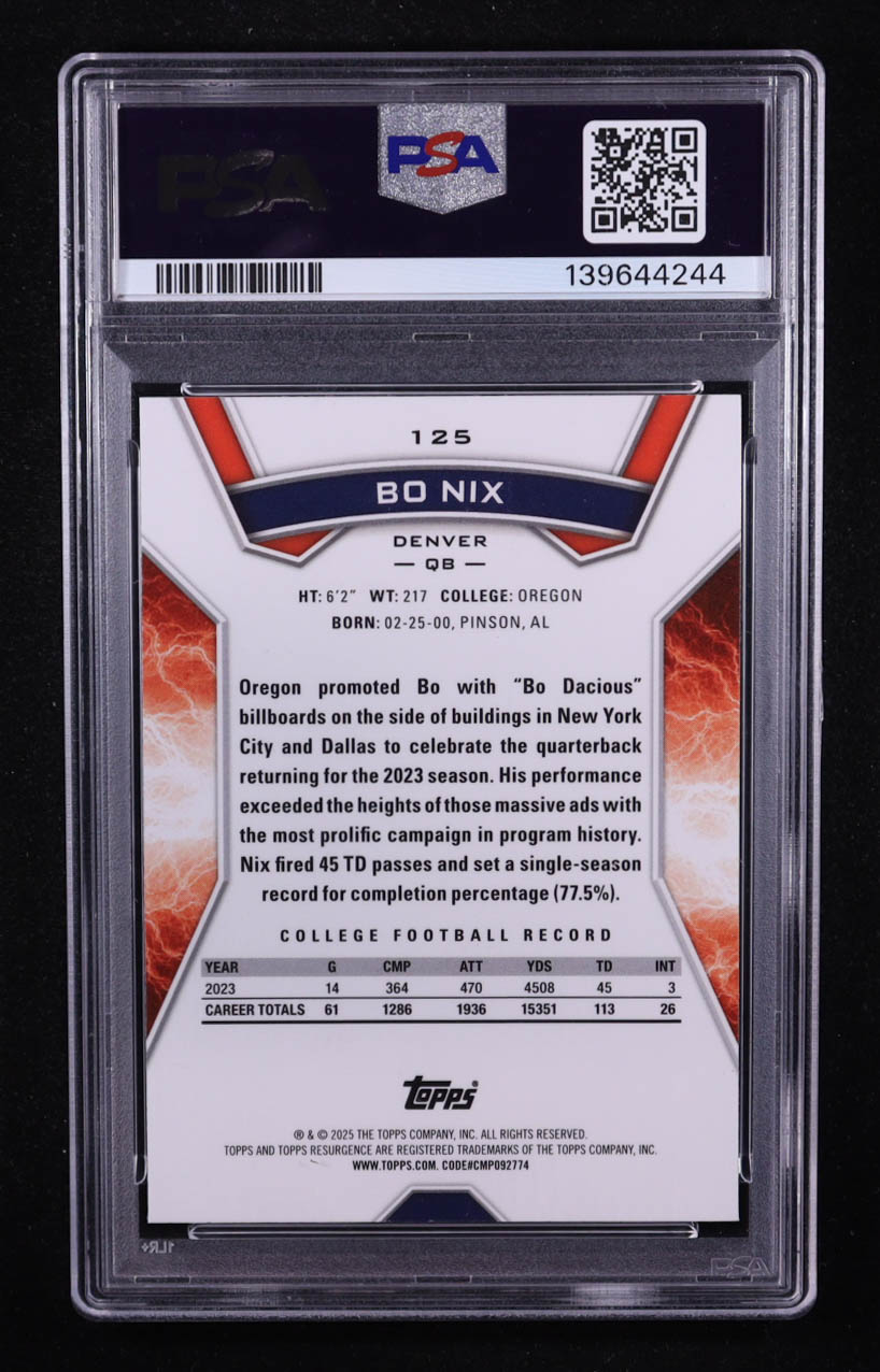 Bo Nix 2024 Topps Resurgence #125 RC (PSA 10)