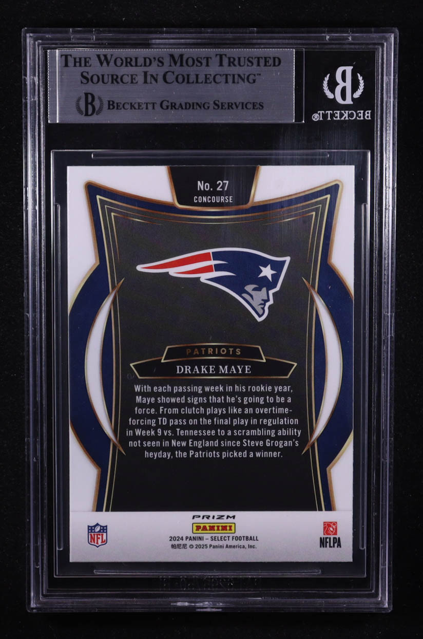 Drake Maye 2024 Panini Select Concourse Black & Blue Shock Prizm #27 RC (BGS 8.5)