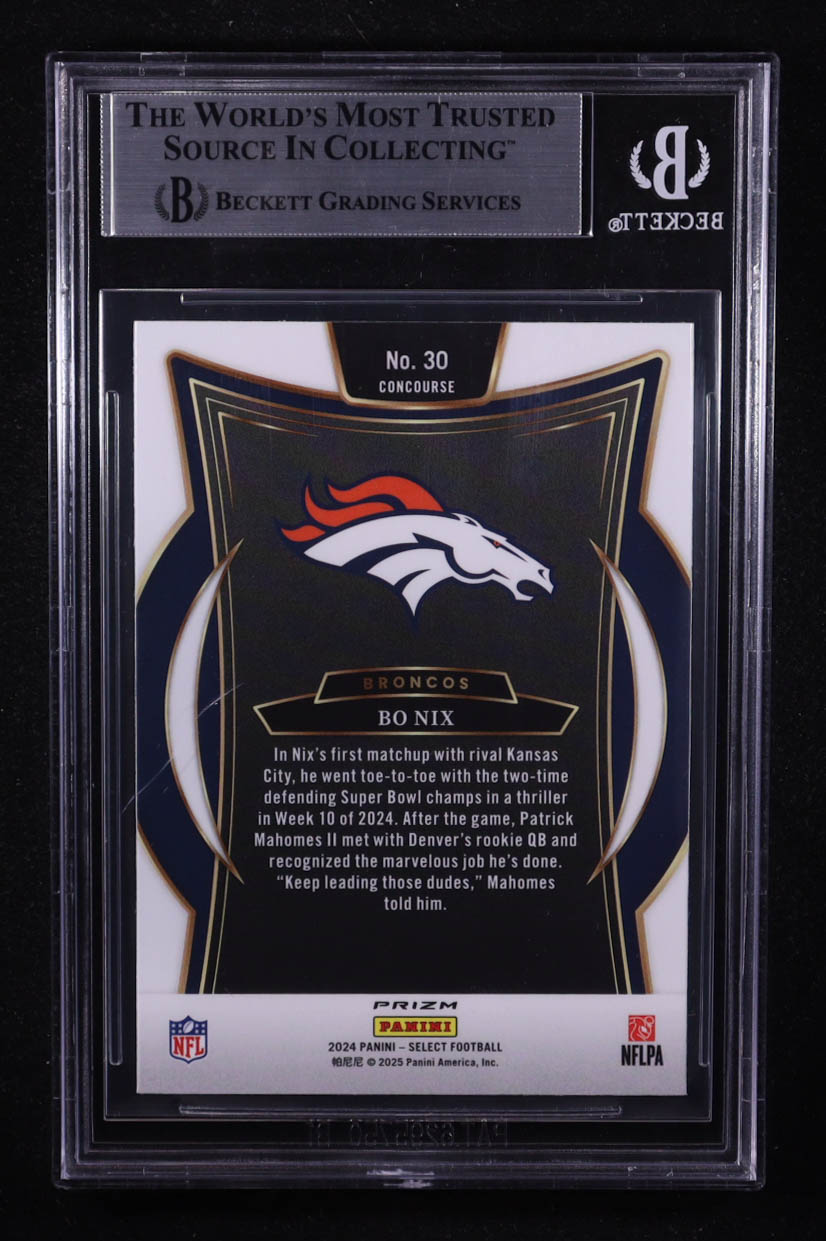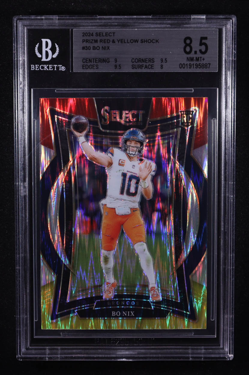 Bo Nix 2024 Panini Select Concourse Red & Yellow Shock Prizm #30 RC (BGS 8.5)
