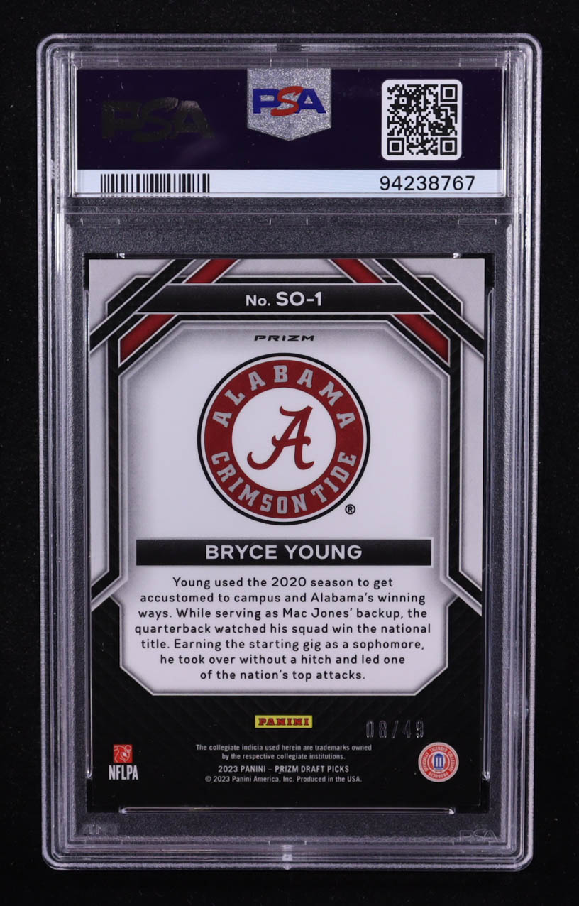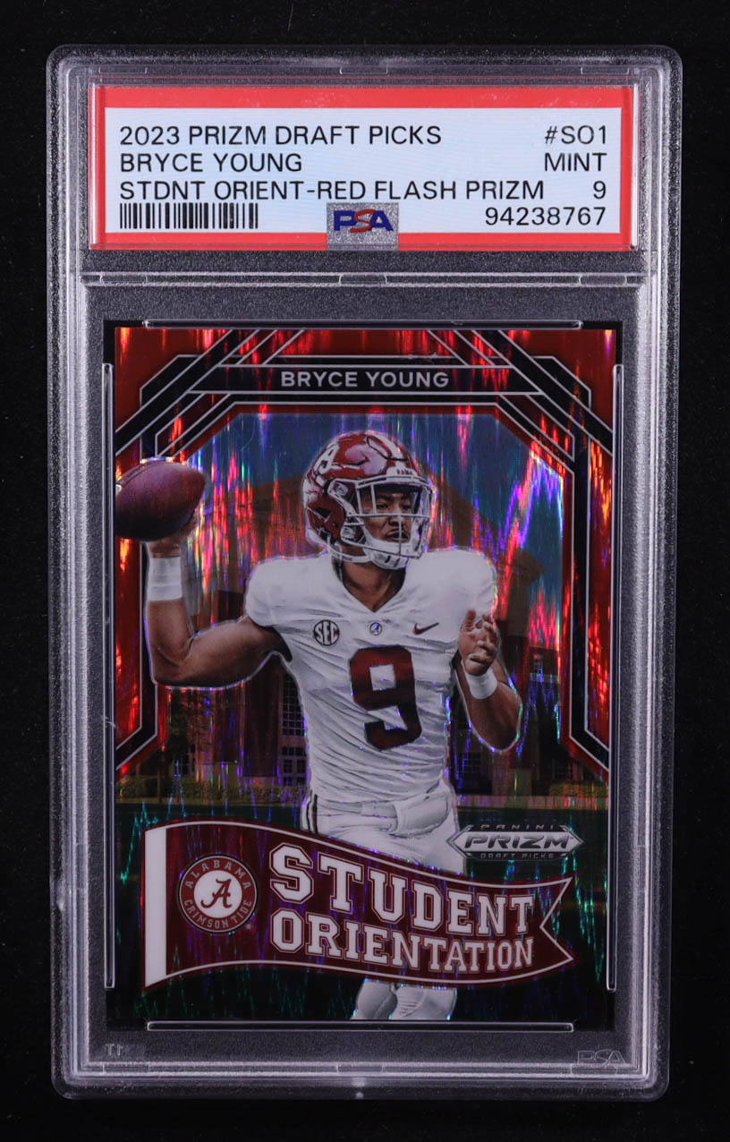 Bryce Young 2023 Panini Prizm Draft Picks Student Orientation Red Flash #1 RC #8/49 (PSA 9)