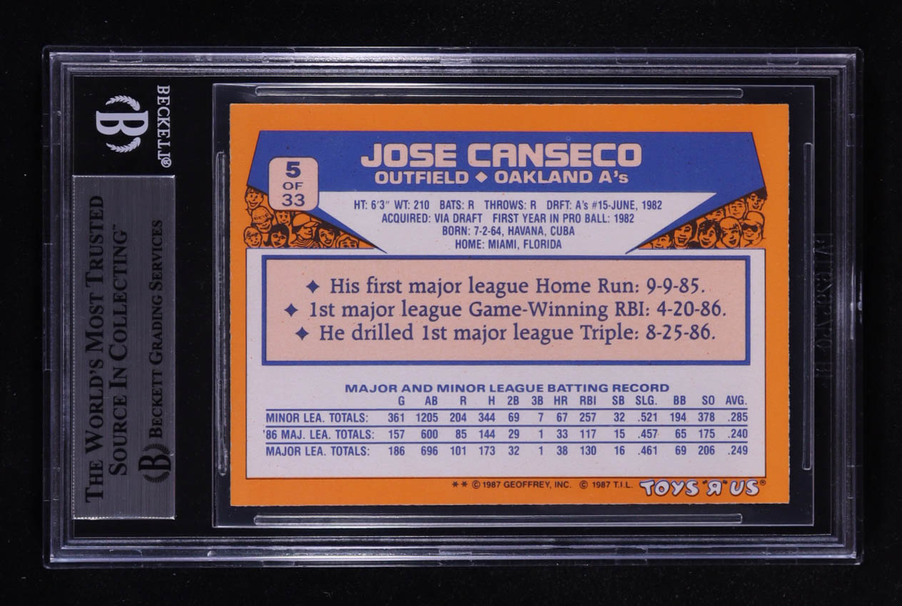 Jose Canseco Signed 1987 Toys R Us Rookies #5 (BGS)