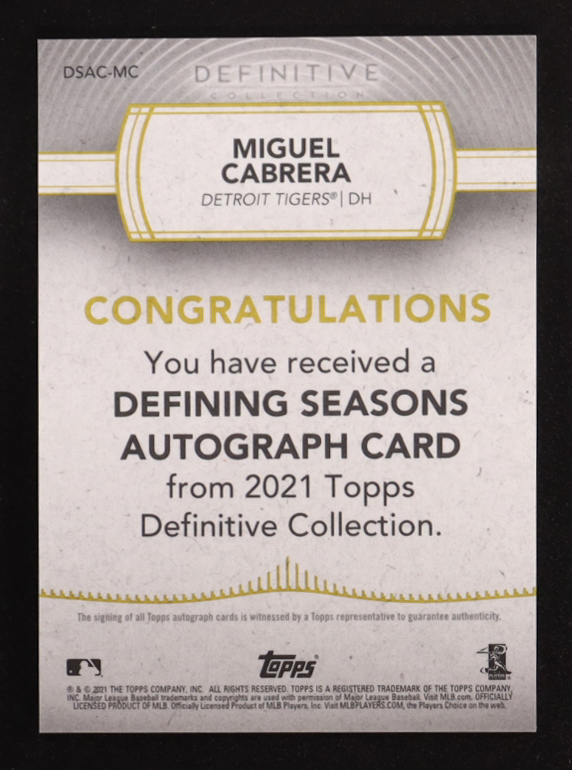 Miguel Cabrera 2021 Topps Definitive Collection Defining Seasons Autographs #DSACMC #01/25