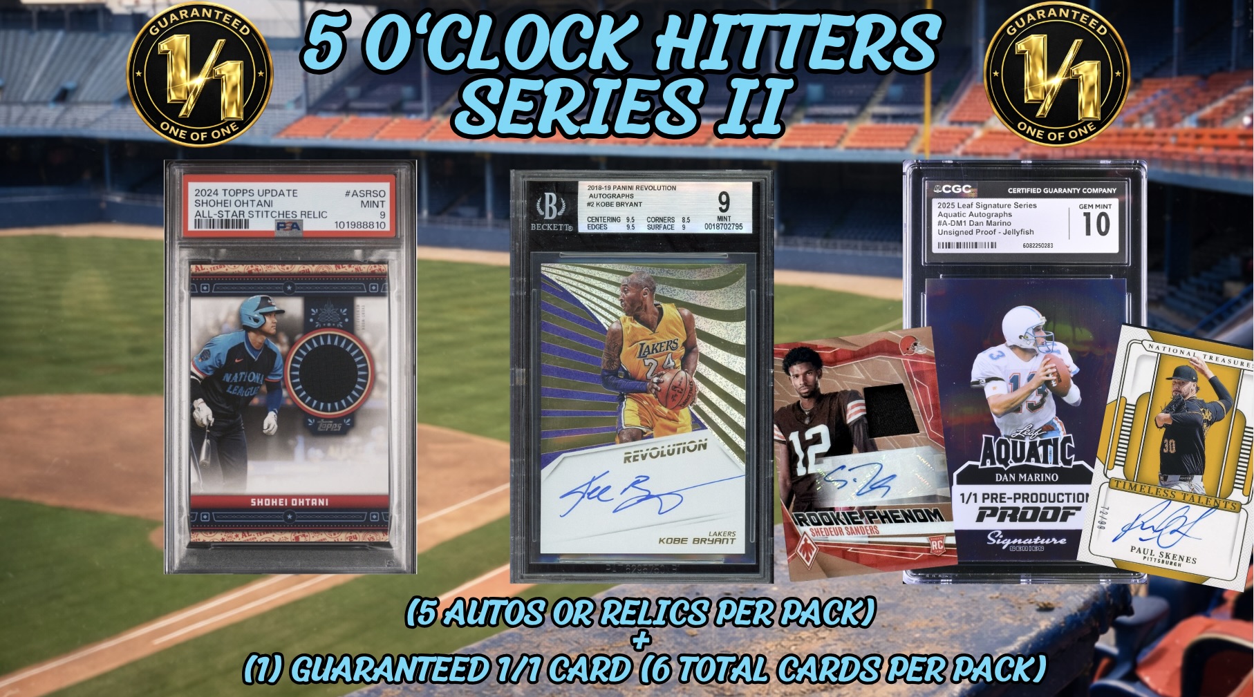 Break King: 5 O’Clock Hitters Series II is bringing the heat. Built for true hit chasers, every pack delivers a high-energy ripping experience featuring five certified autograph and/or relic cards plus a guaranteed 1/1. Expect icons, superstars, and rising phenoms from football, basketball, baseball, and beyond.
