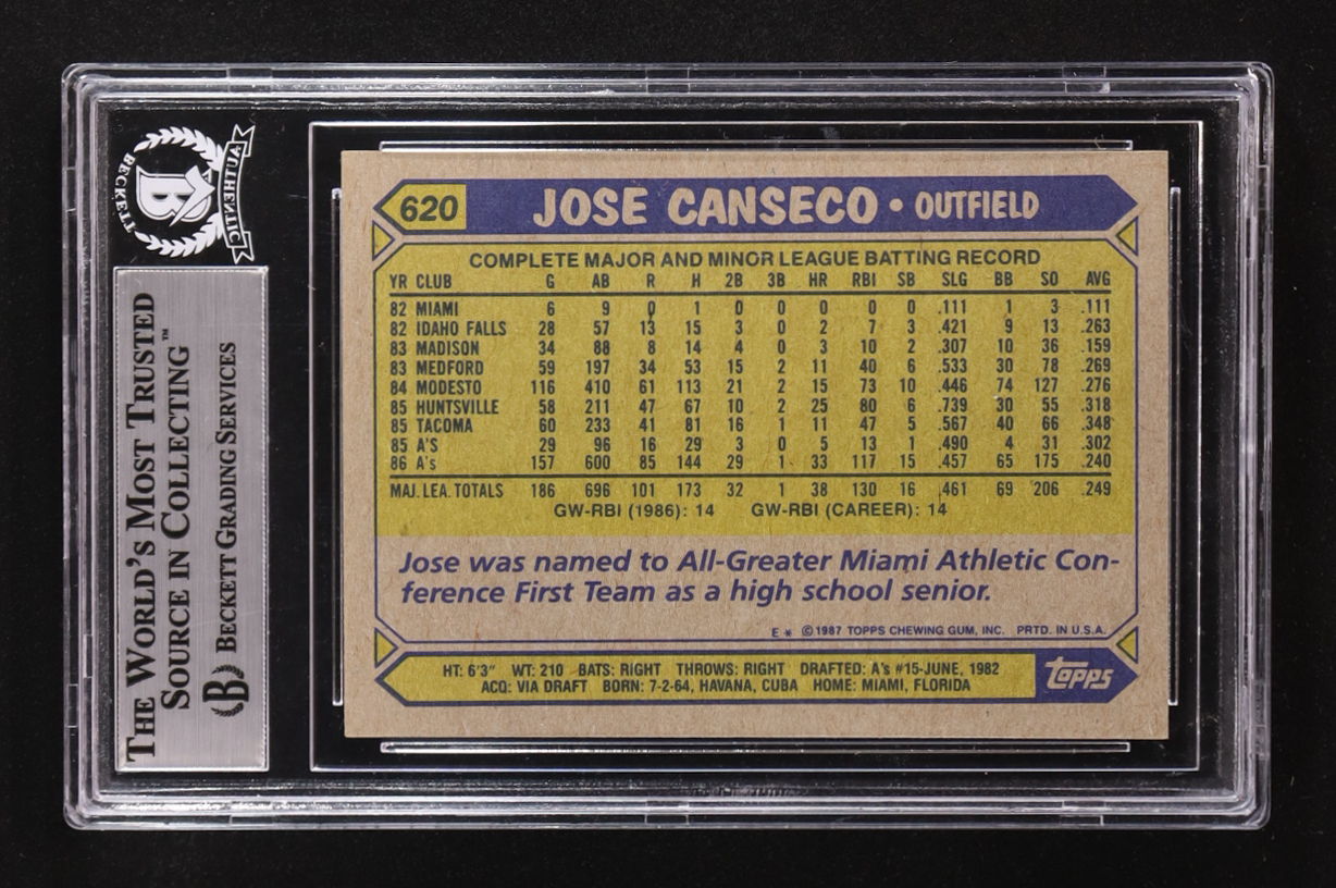 Jose Canseco Signed 1987 Topps #620 (BGS | Autograph Graded Authentic)