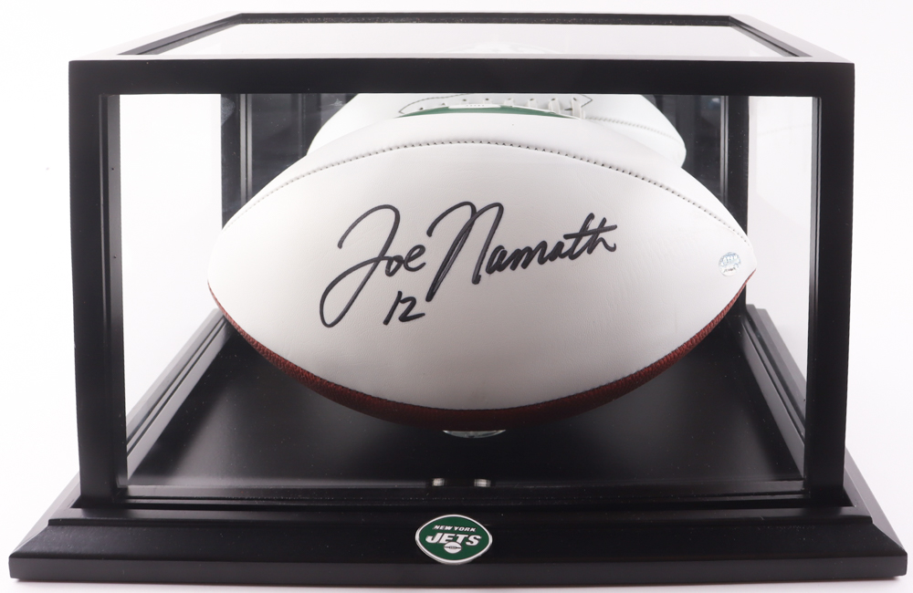 Joe Namath Signed Jets Logo Football with Display Case (GTSM)