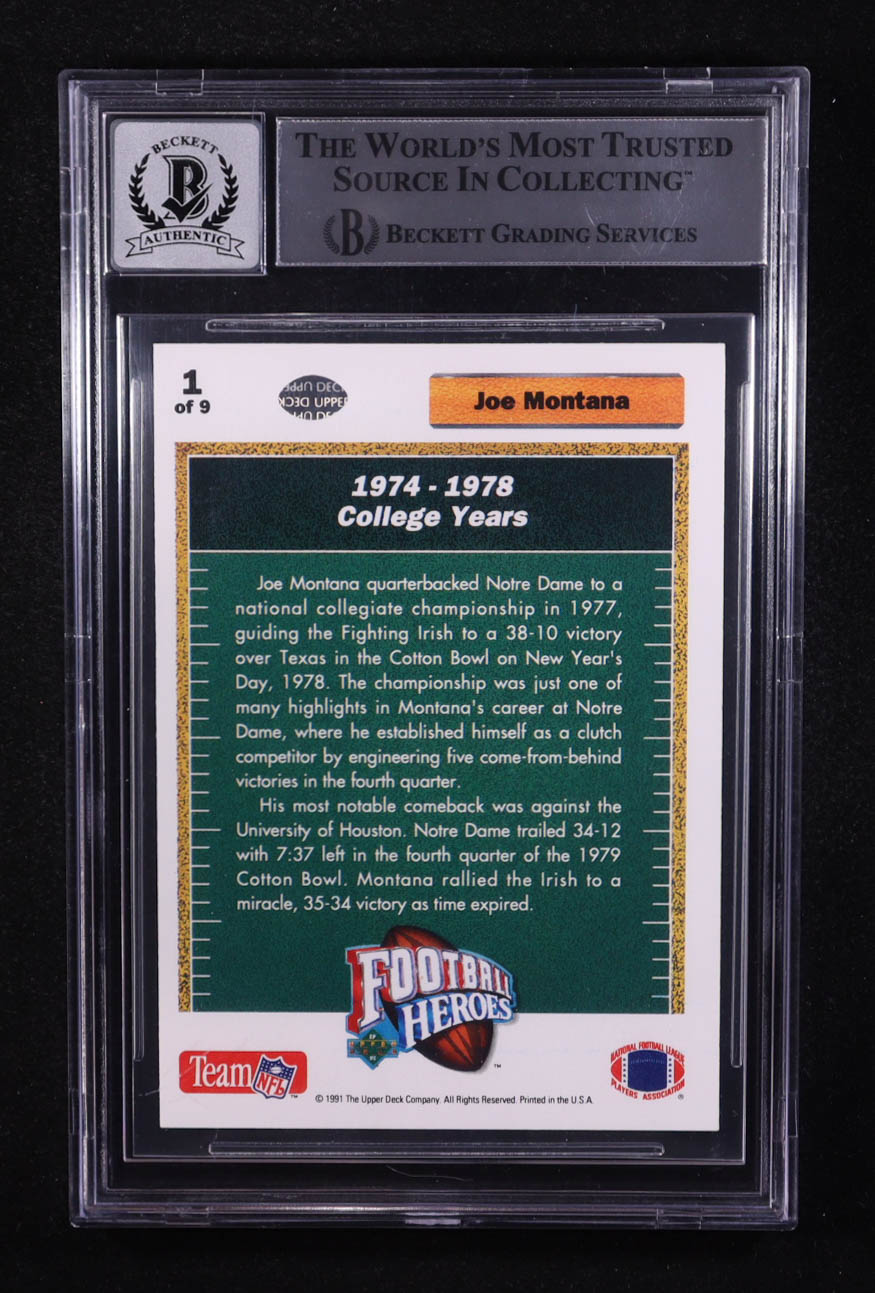 Joe Montana Signed 1991 Upper Deck Joe Montana Heroes #1 (BGS)