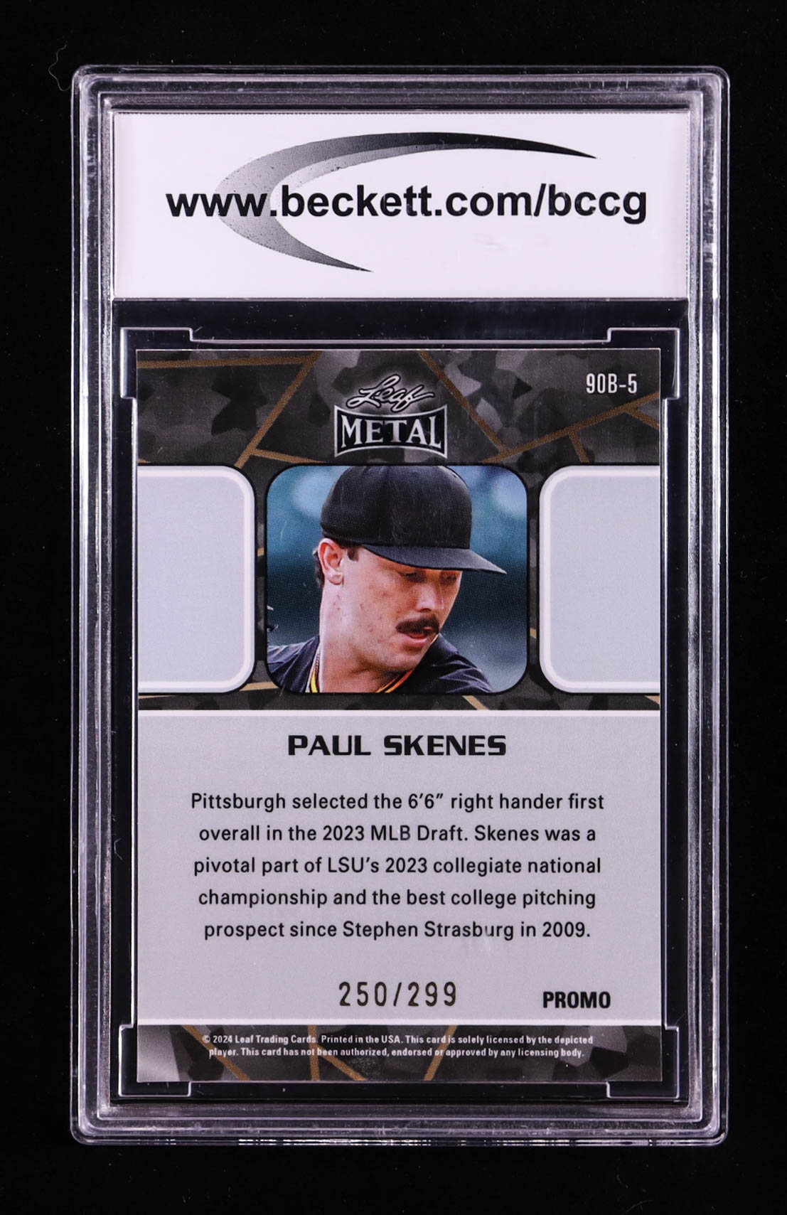 Paul Skenes 2024 Leaf Collective Promo '90 Leaf Shimmer Orange #90B5 RC #250/299 (BCCG 10)