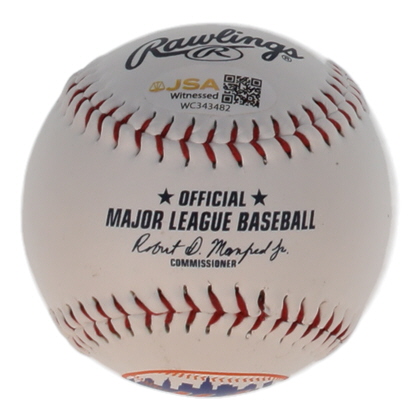 Rawlings Official Major League New York Mets Logo Baseball. Hand-signed and inscribed by Dwight Gooden. Please note, there are minor stains throughout the baseball.