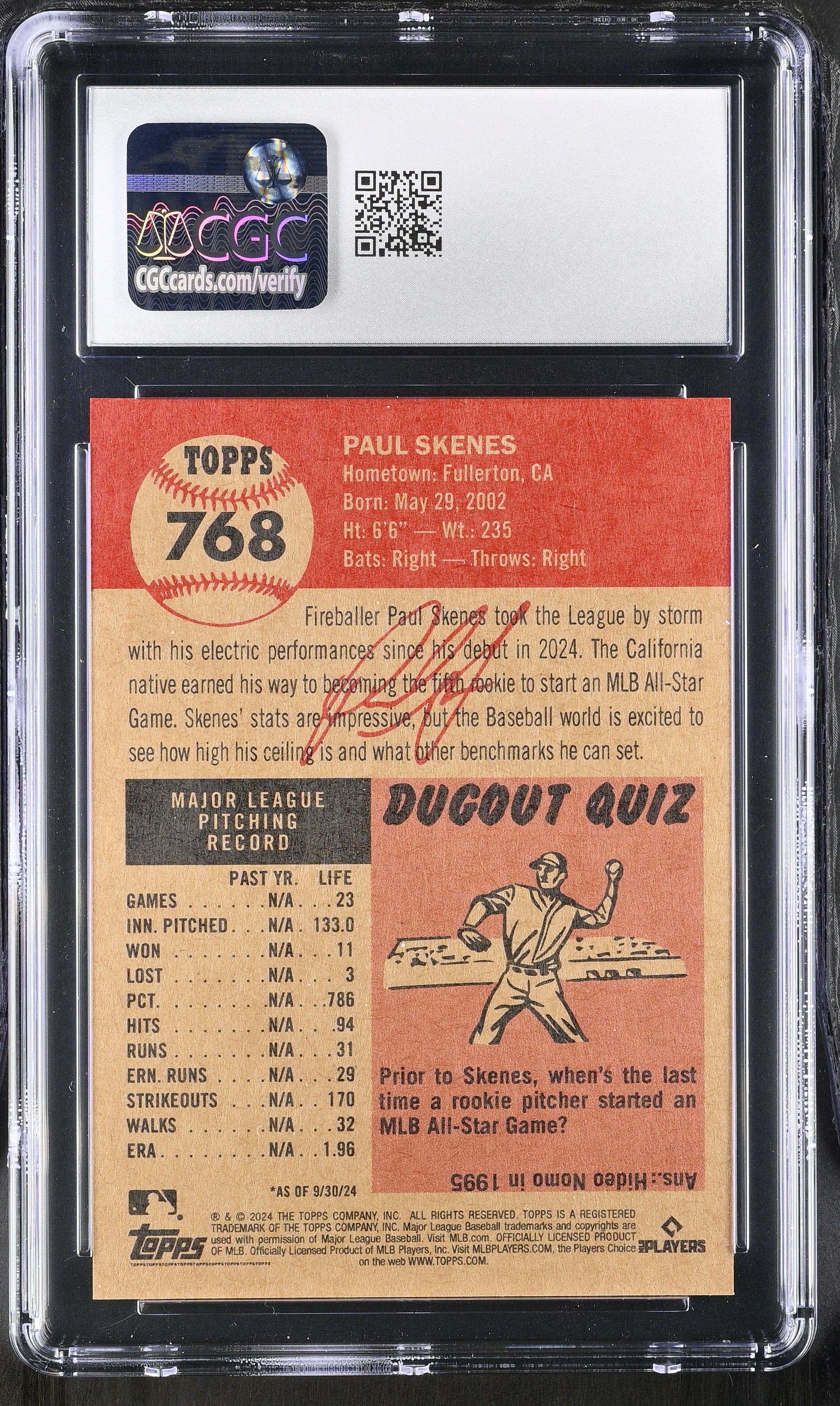 Paul Skenes 2024 Topps Living Set #768 RC (CGC 9.5)