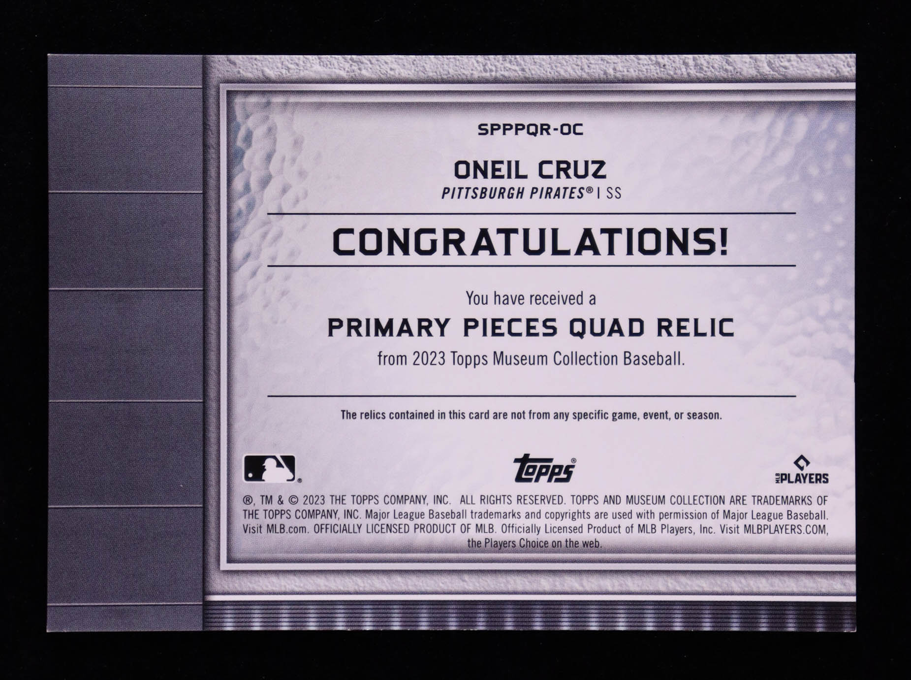 Oneil Cruz 2023 Topps Museum Collection Primary Pieces Quad Relics #SPPPQROC #74/99