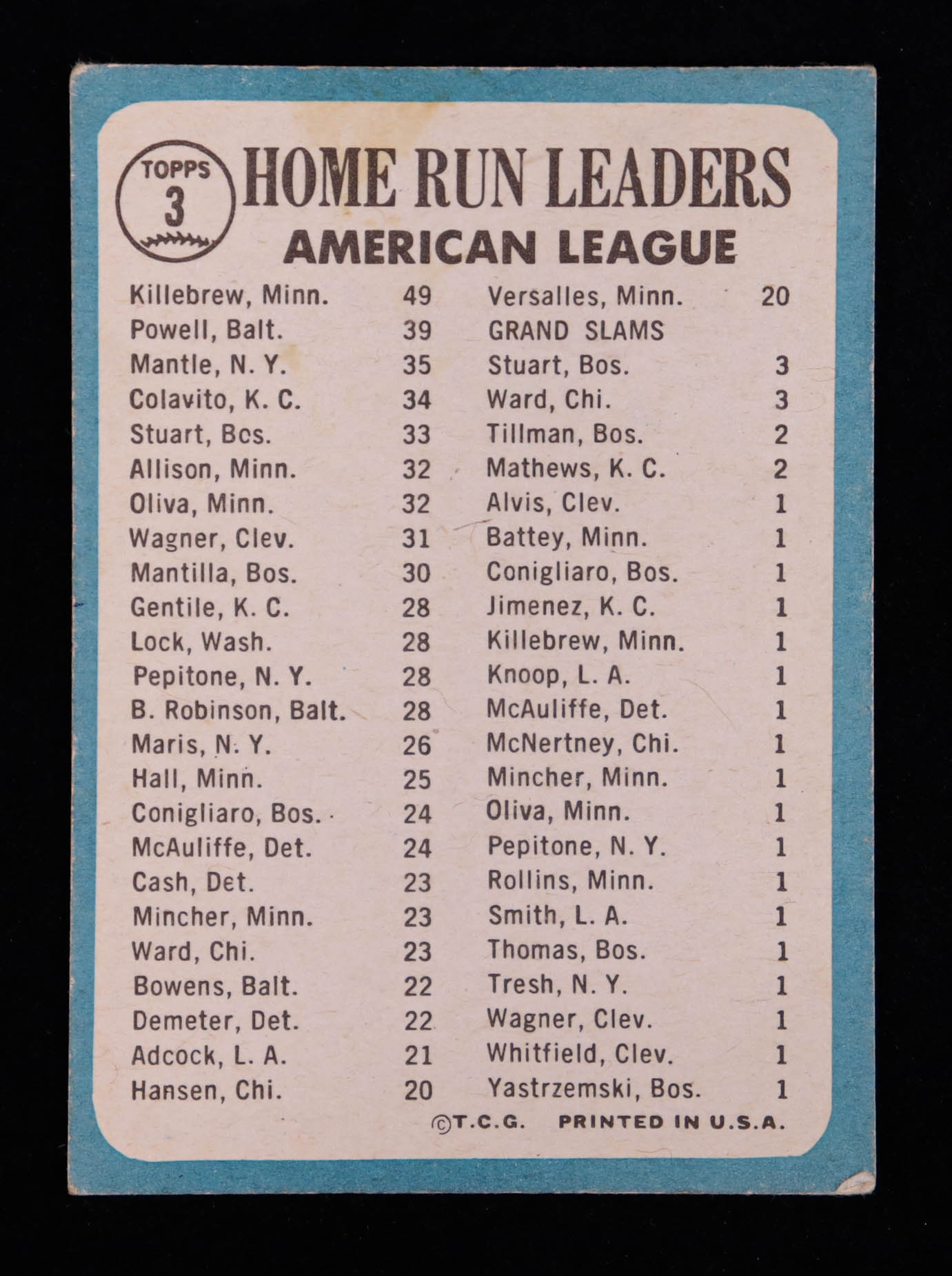 Harmon Killebrew / Mickey Mantle / Boog Powell 1965 Topps #3 AL Home Run Leaders